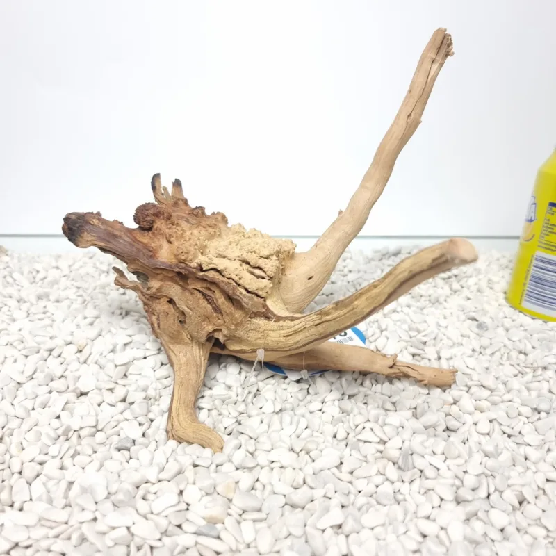 1. Prior to adding roots into a tank it should be soaked in a separate bucket. This has the advantage of making the wood become waterlogged, at which time it should naturally weigh itself down when added to your tank. Also, large amounts of tannin are released during this period and thus it is advisable to make plenty of regular water changes to the bucket. Be patient because although it can take as little as fourteen days for the wood to become waterlogged it can also be a two-month process, depending on the size of root.
