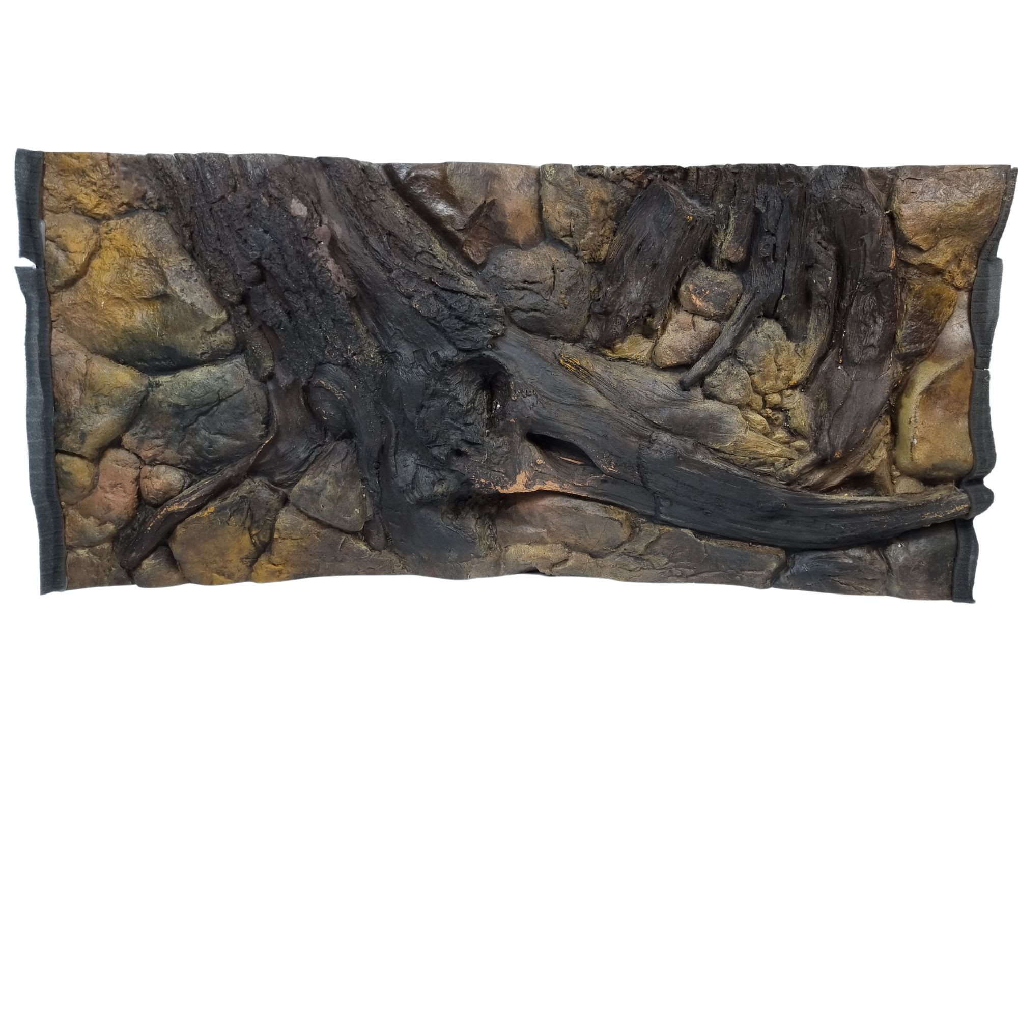 Our handcrafted 3D Basic Root backgrounds are so lifelike, that you’ll think you’re looking at an actual underwater riverbank. Featuring one intricate root formations emerging from rugged rock faces, these backgrounds add dramatic depth and dimension to your aquarium. Your fish will love exploring the countless caves and crevices, while you enjoy a stunning natural view.